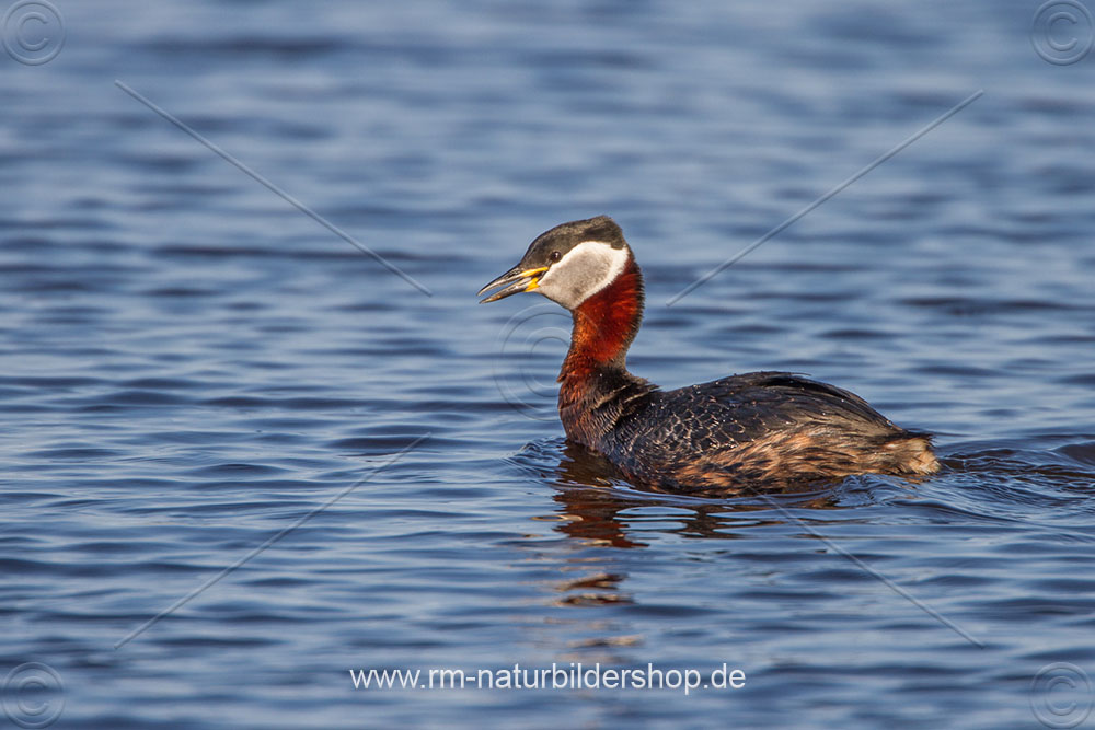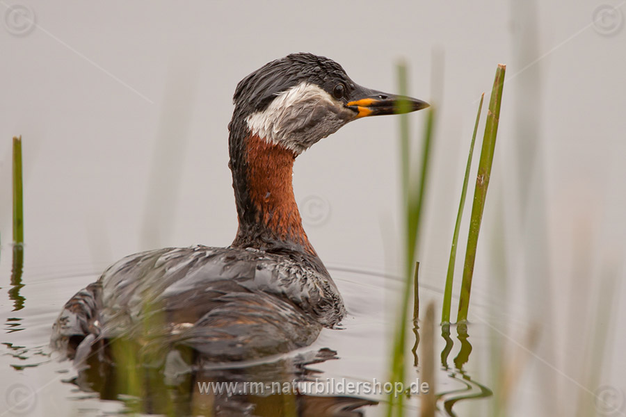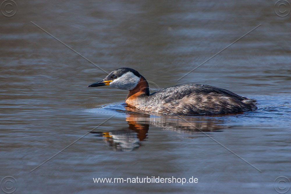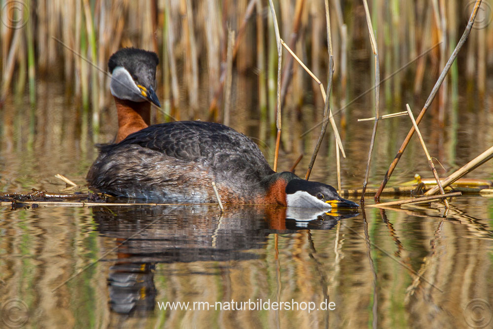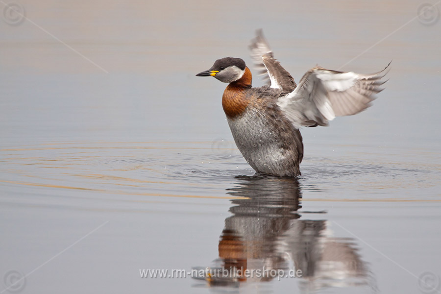 Rothalstaucher (Podiceps grisegena) wassertretend nach der Paarung