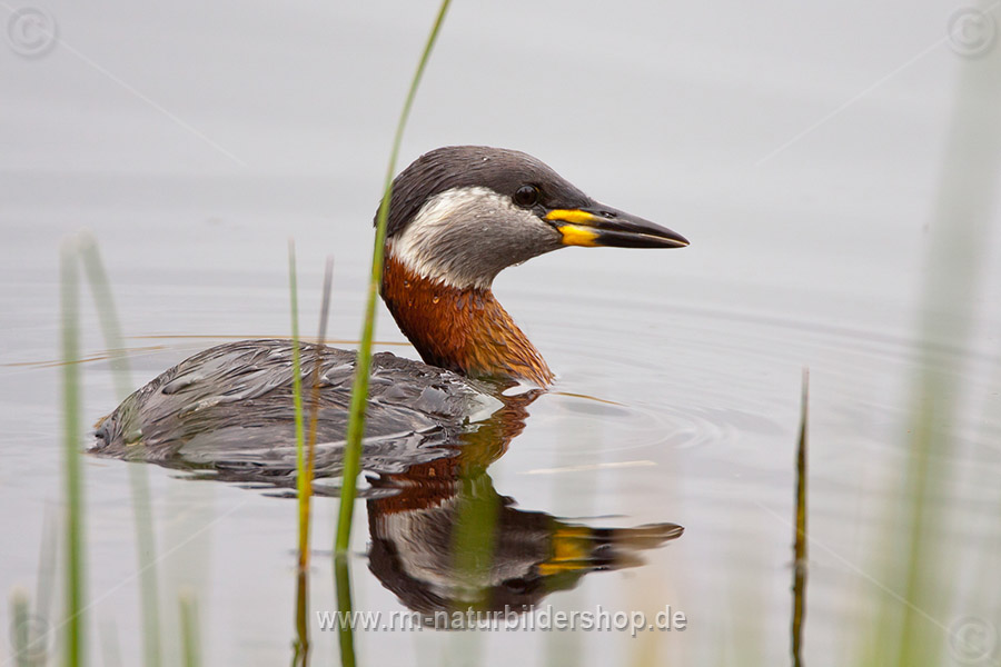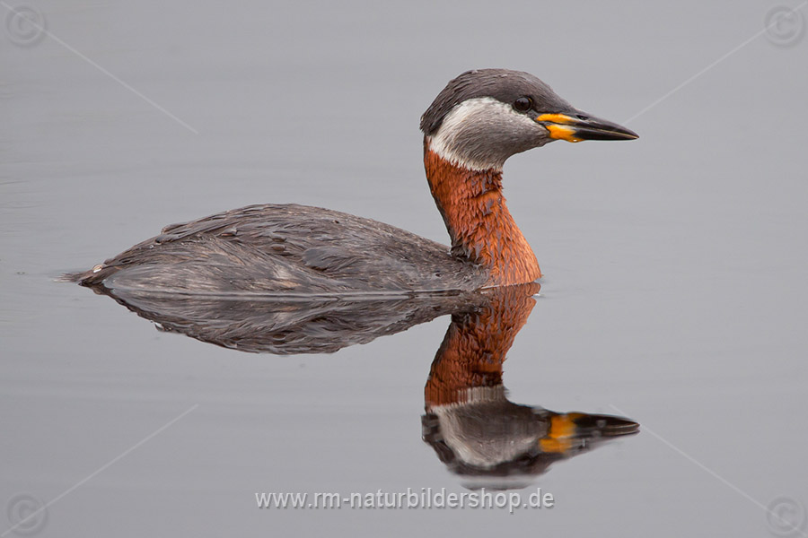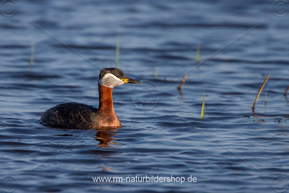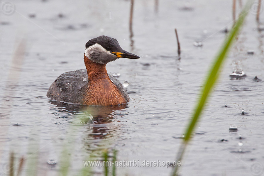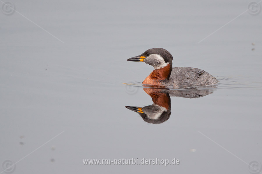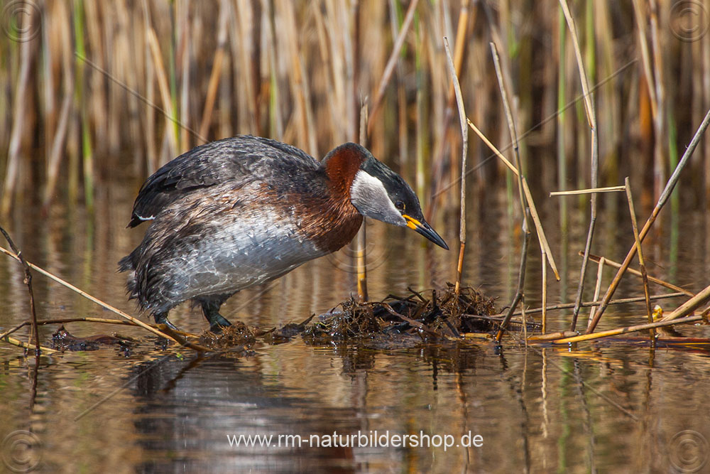 Rothalstaucher (Podiceps grisegena) wassertretend nach der Paarung