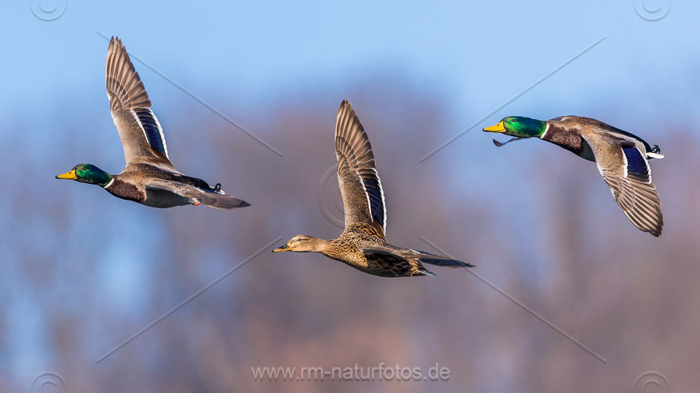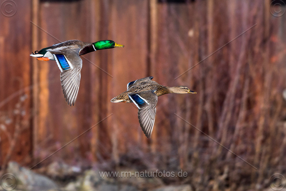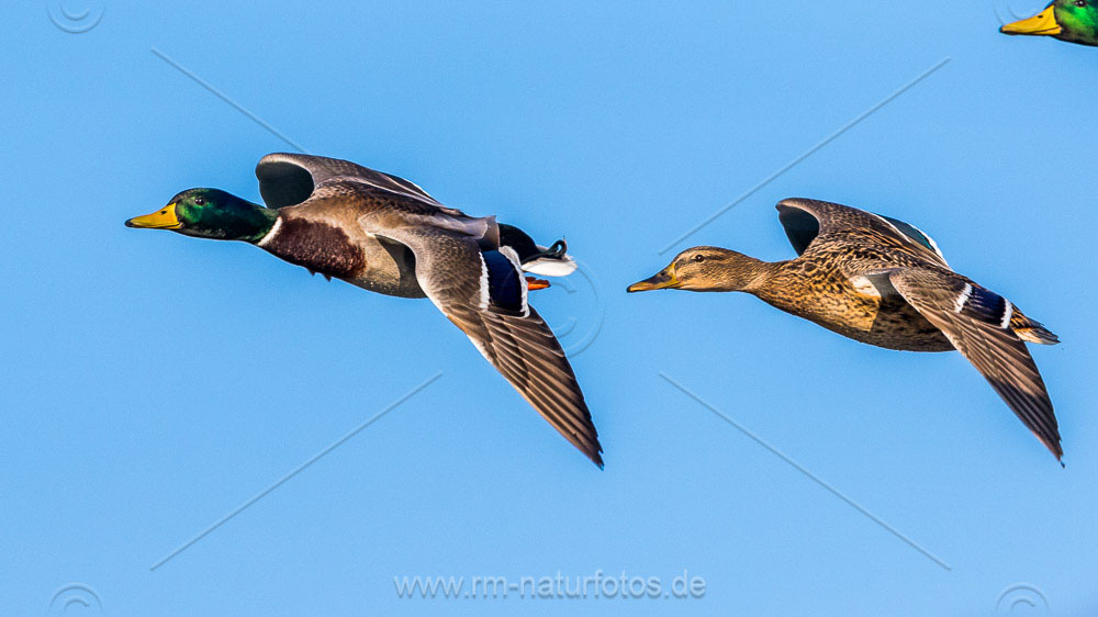 Stockente (Anas platyrhynchos) Männchen (Panorama aus zwei Bildern)