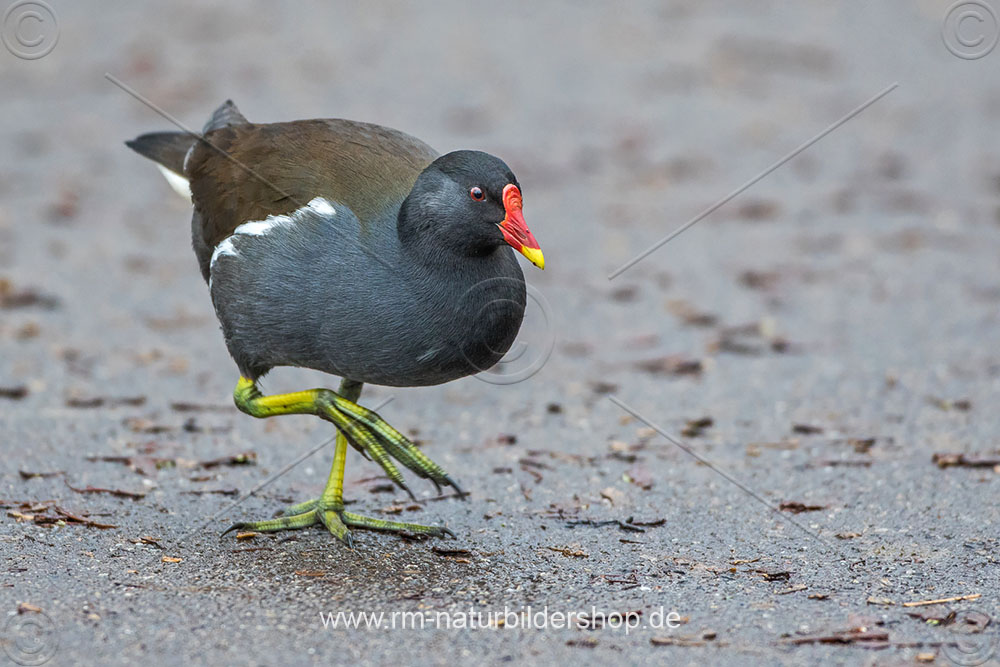 Teichhuhn (Gallinula chloropus) mit Nistmaterial