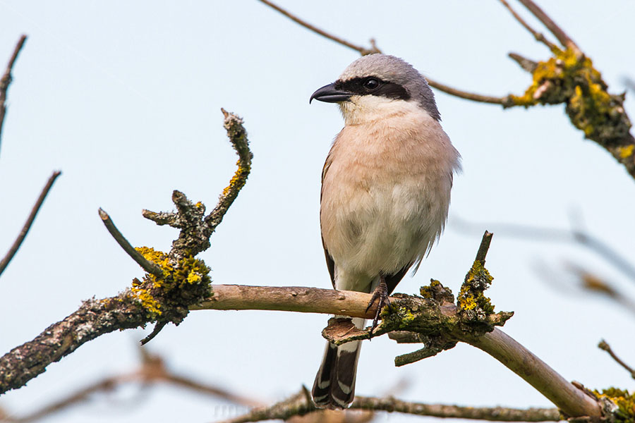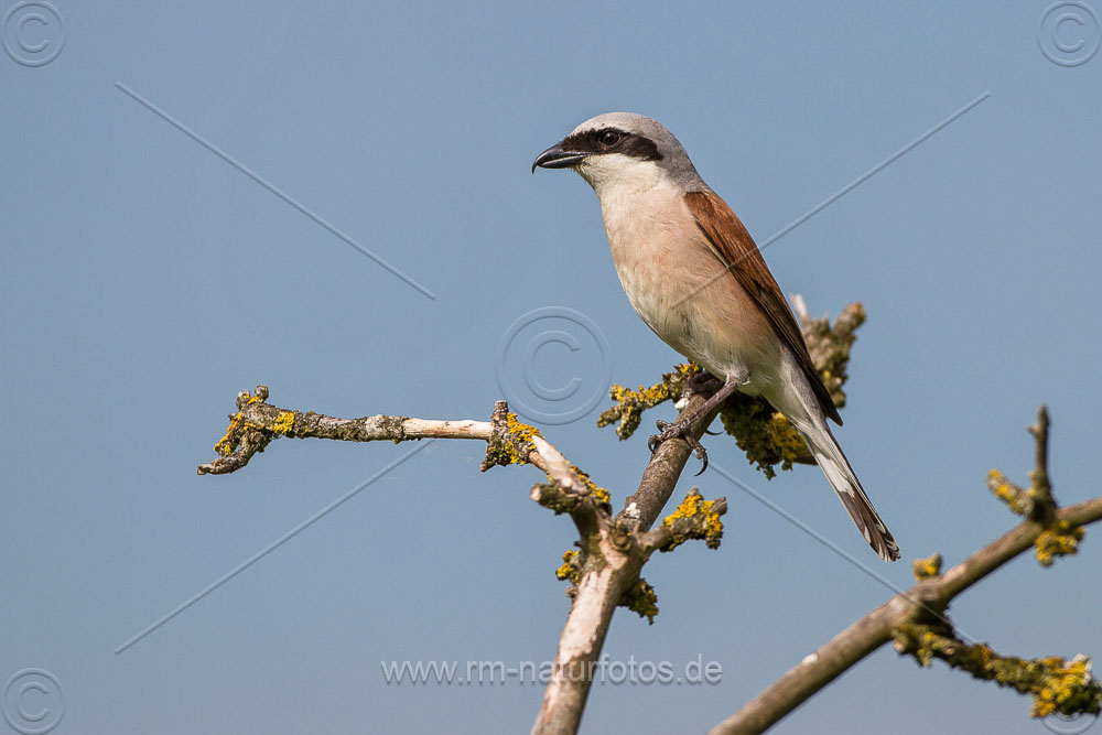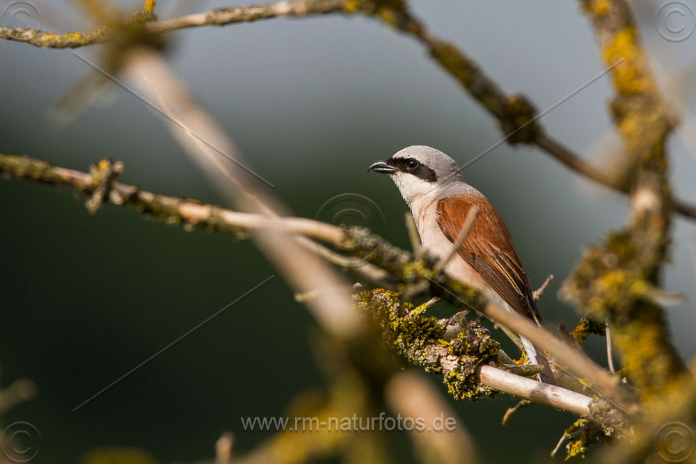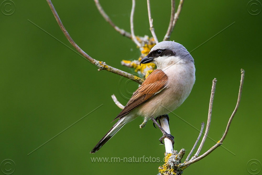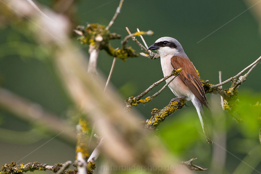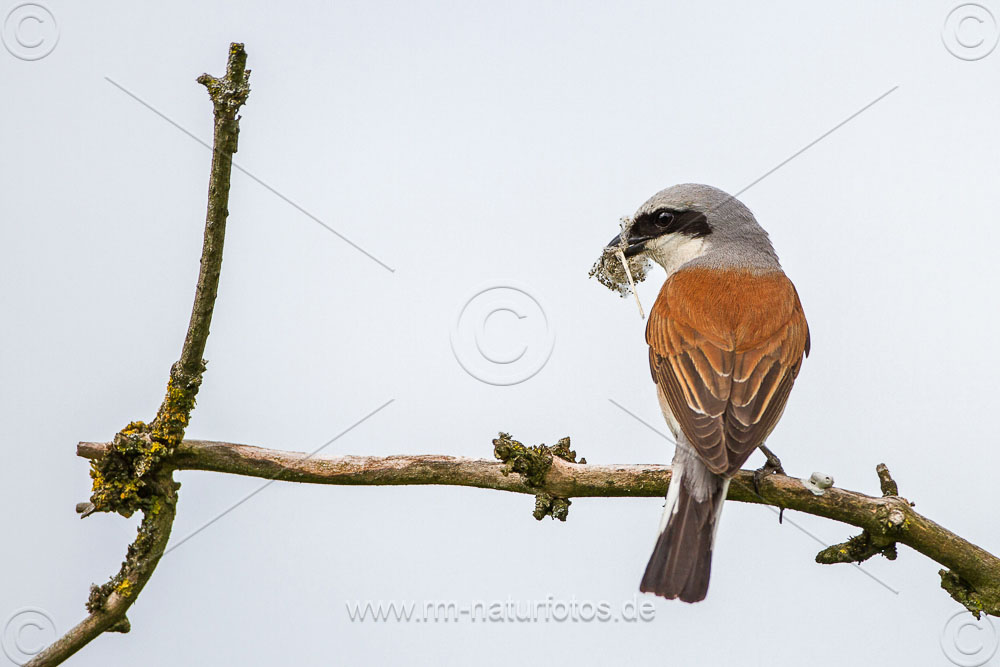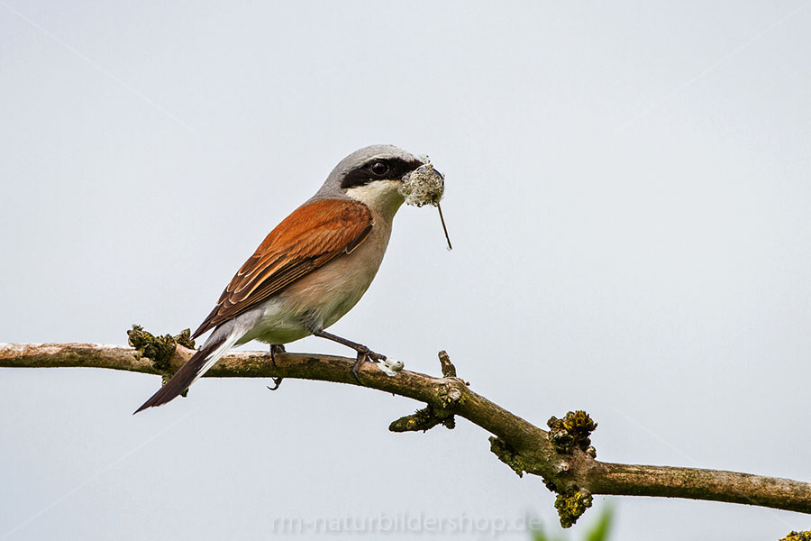 Neuntöter (Lanius collurio) Männchen mit Nistmaterial