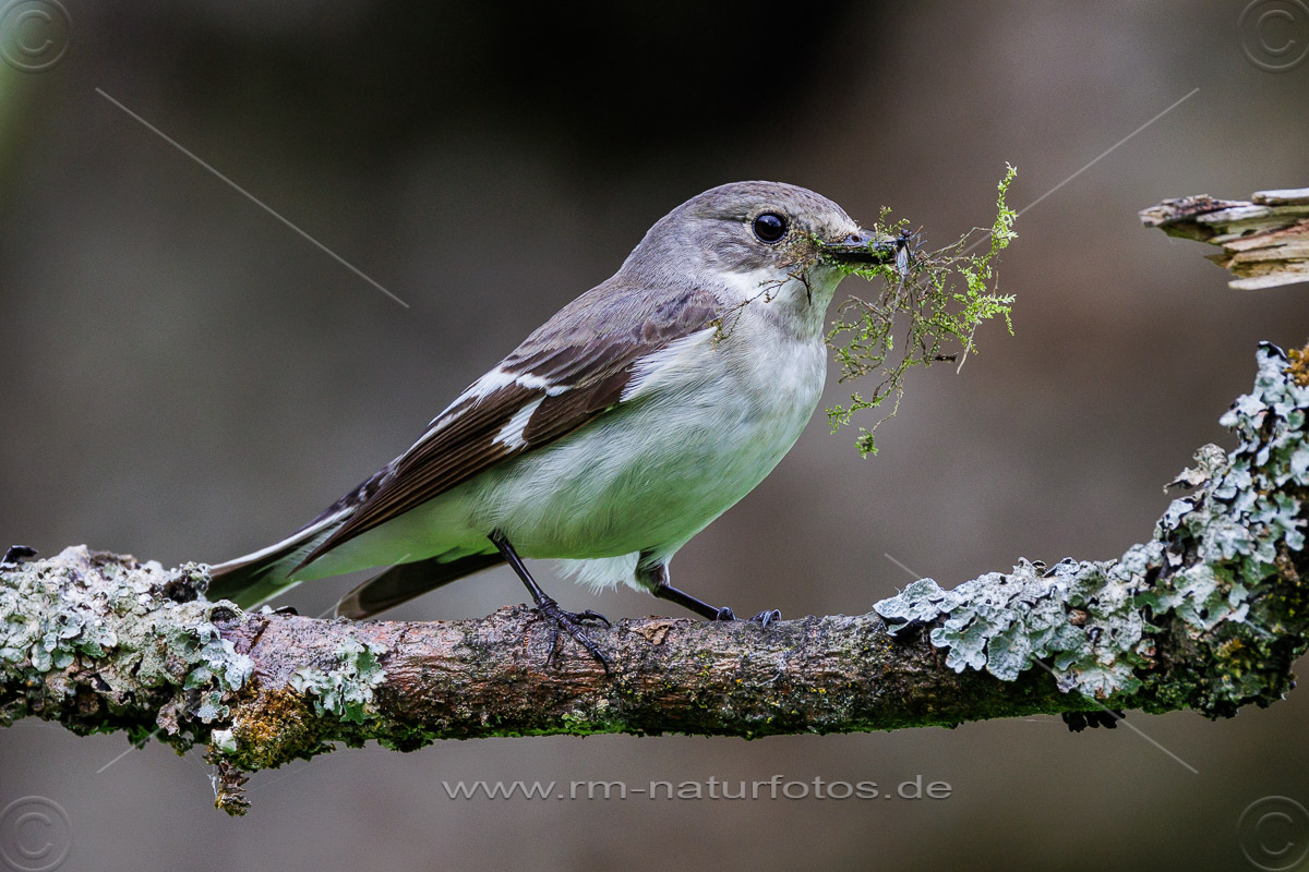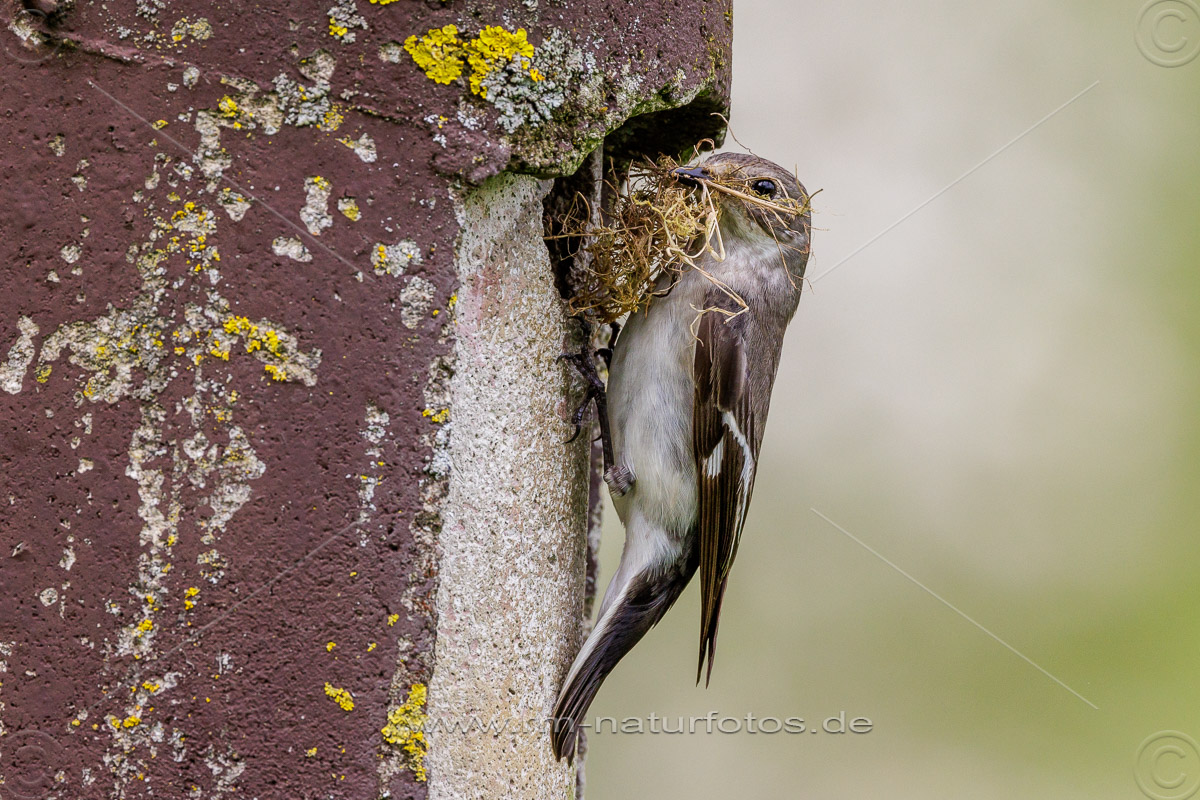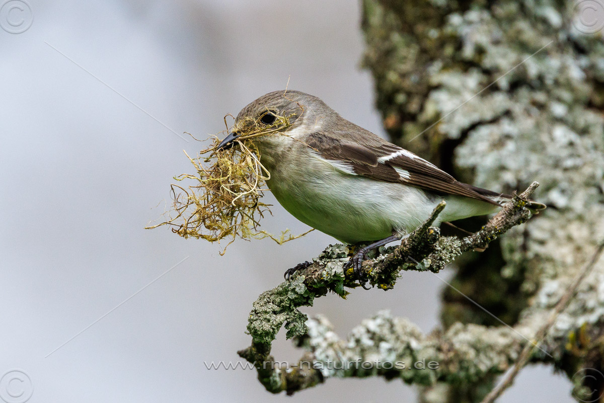 Halsbandschnäpper (Ficedula albicollis) Weibchen mit Nistmaterial