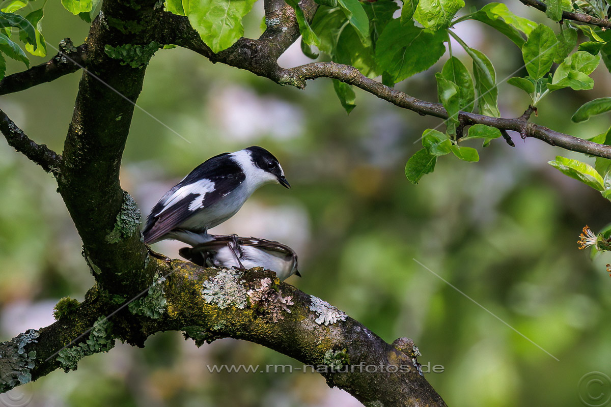 Halsbandschnäpper (Ficedula albicollis) bei der Paarung