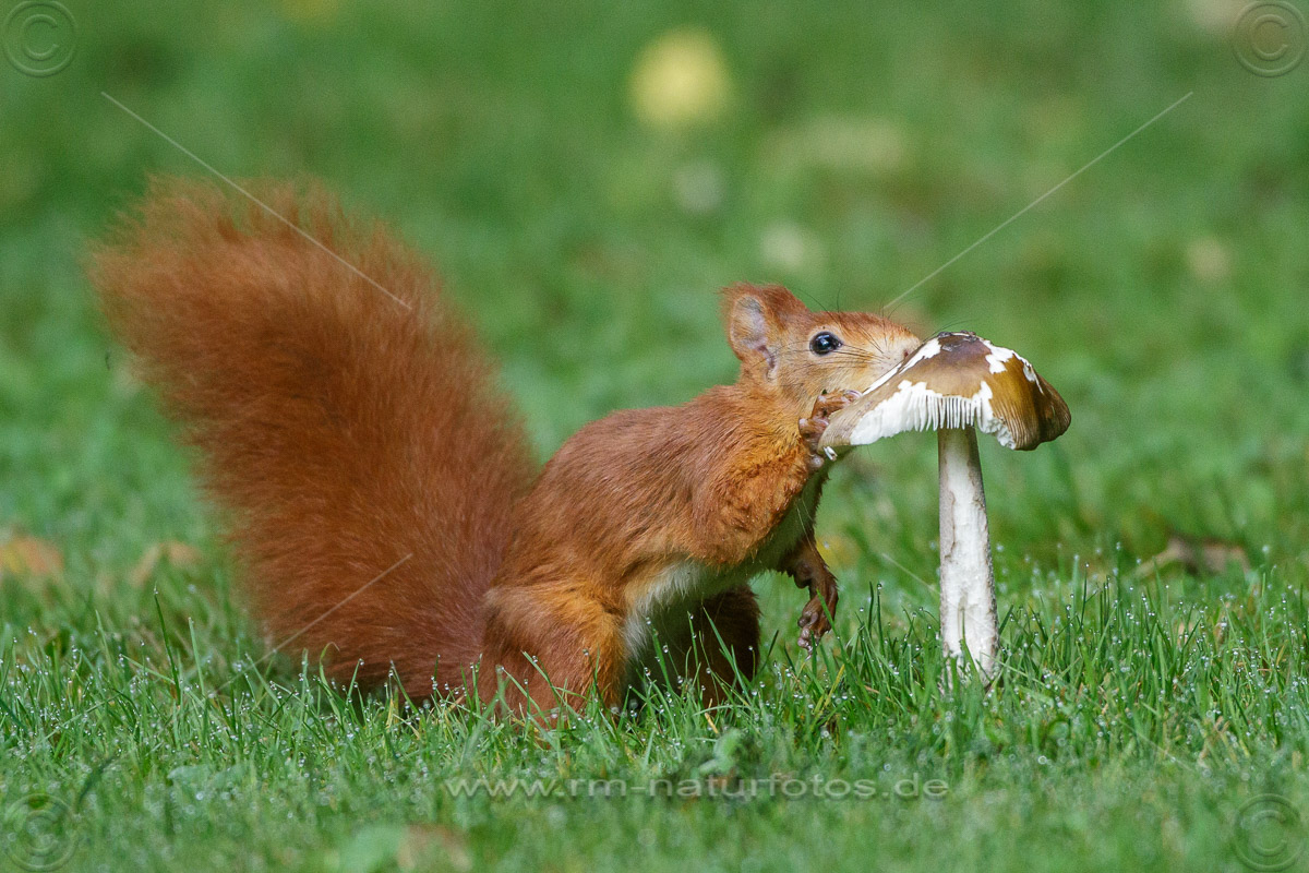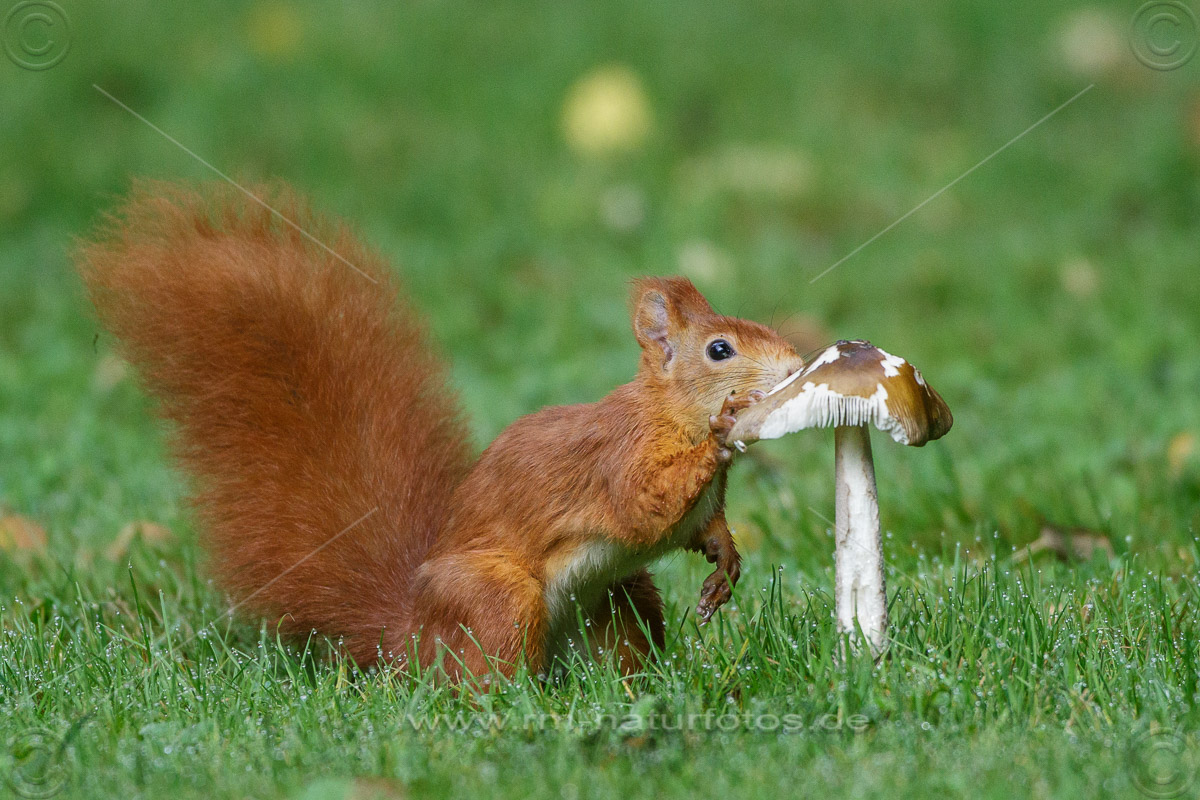 Eichhörnchen (Sciurus vulgaris) frisst Pilz