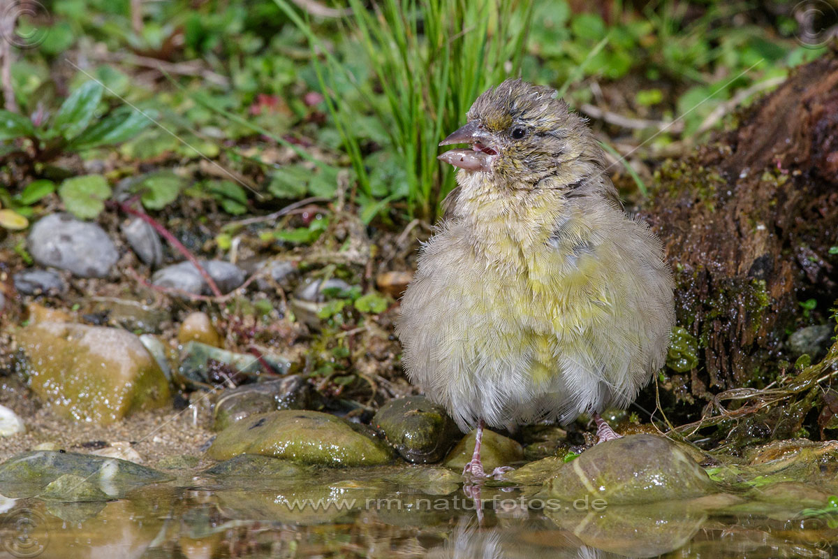 Grünfink (Carduelis chloris) an Wasserstelle