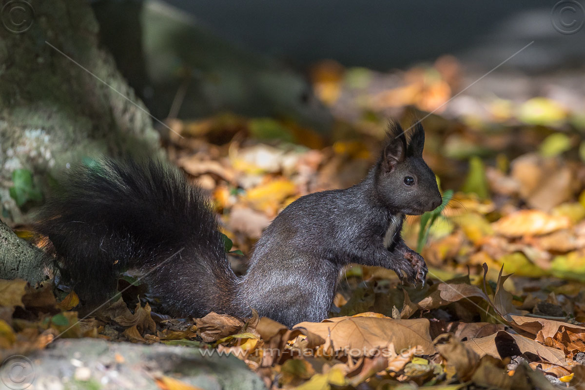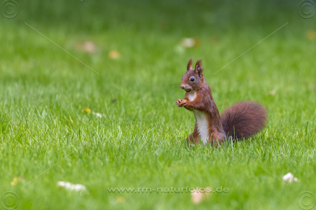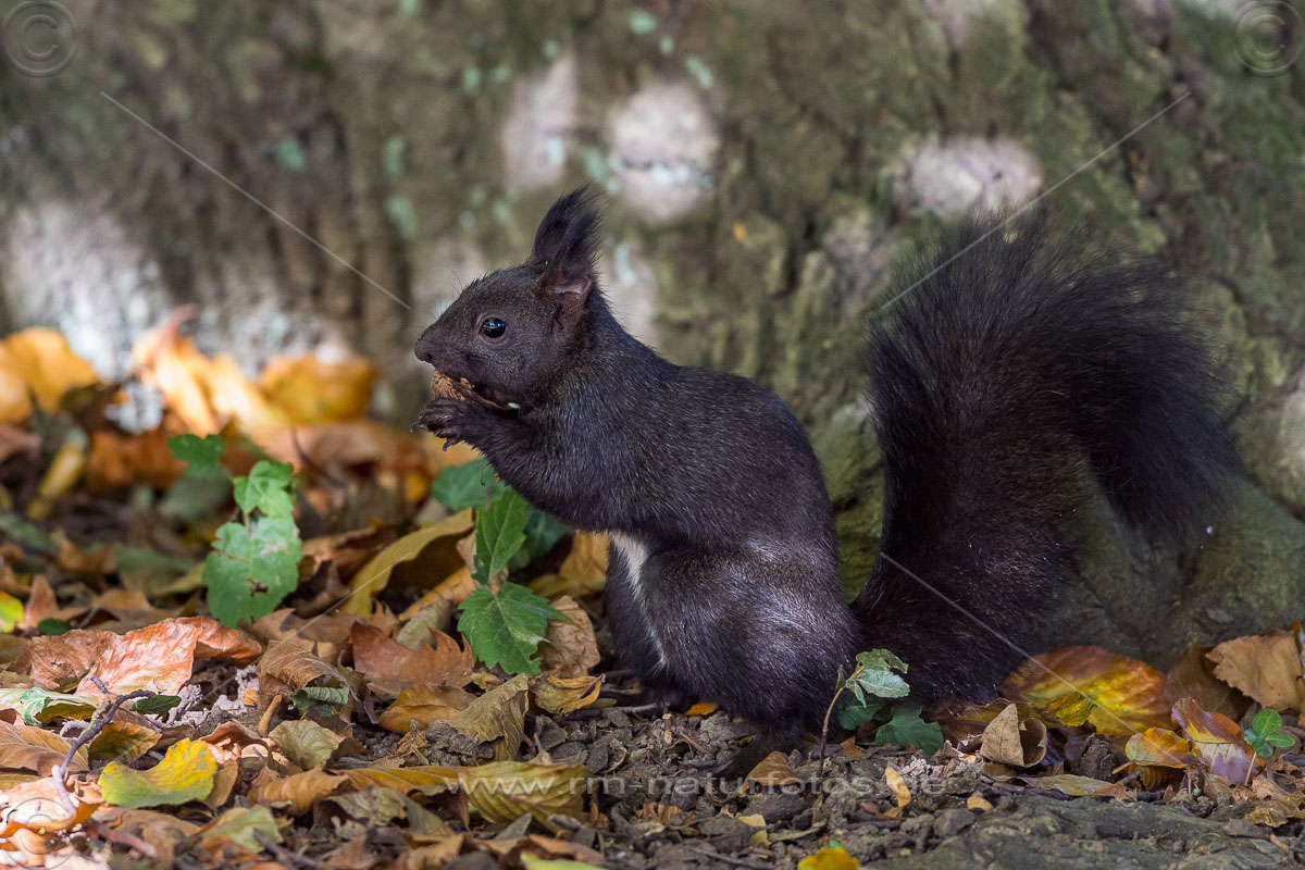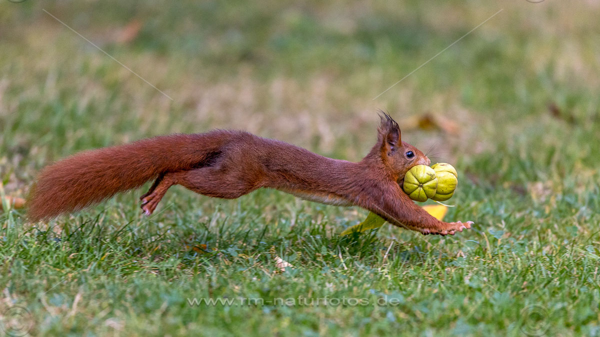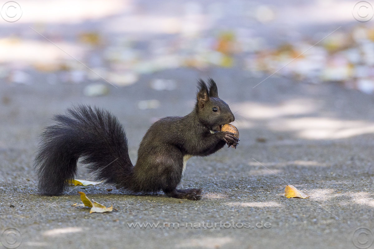 Eichhörnchen (Sciurus vulgaris) mit Hickorynüssen