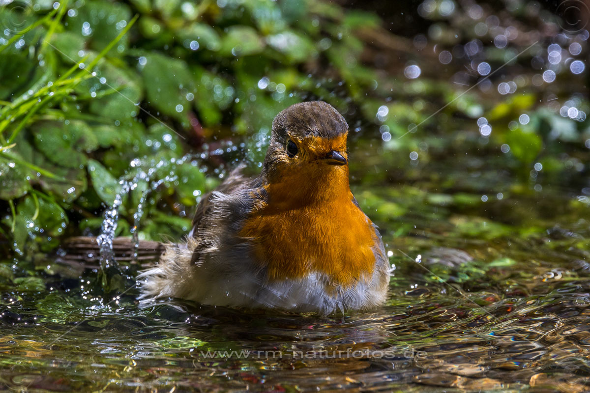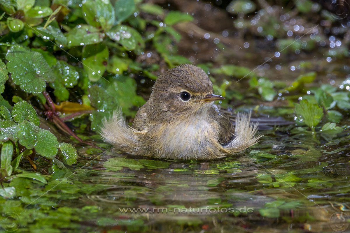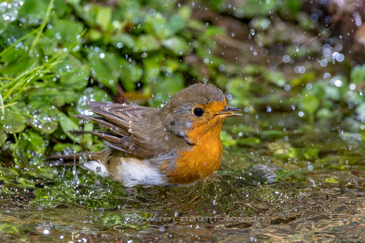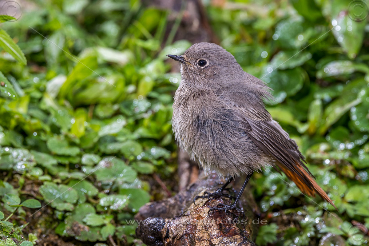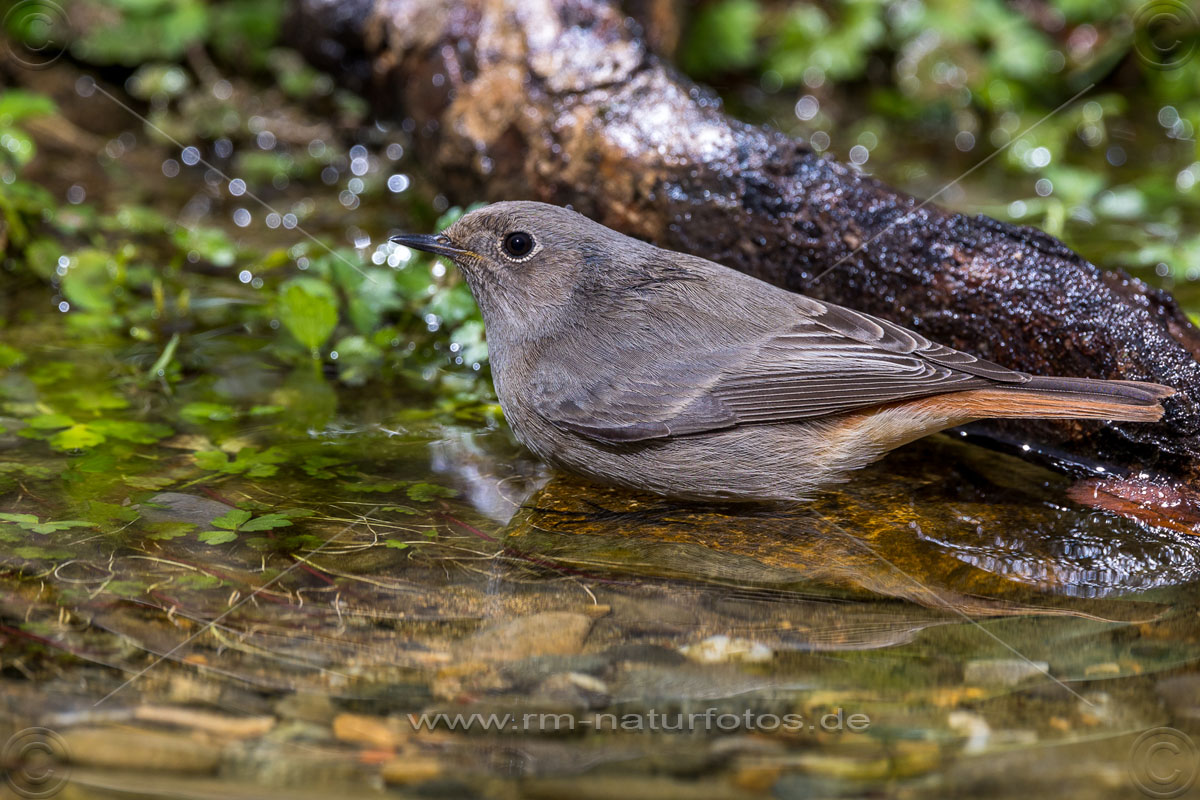 Hausrotschwanz (Phoenicurus ochruros) Weibchen badet
