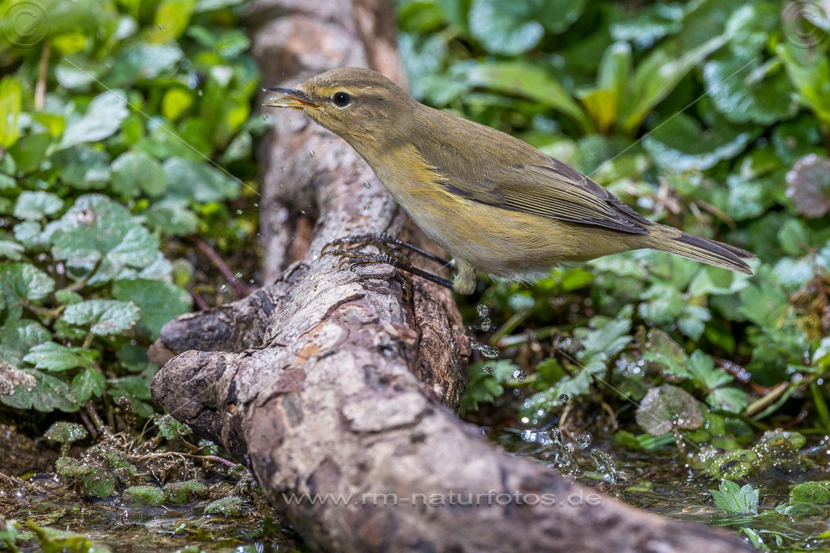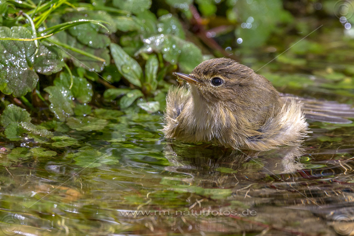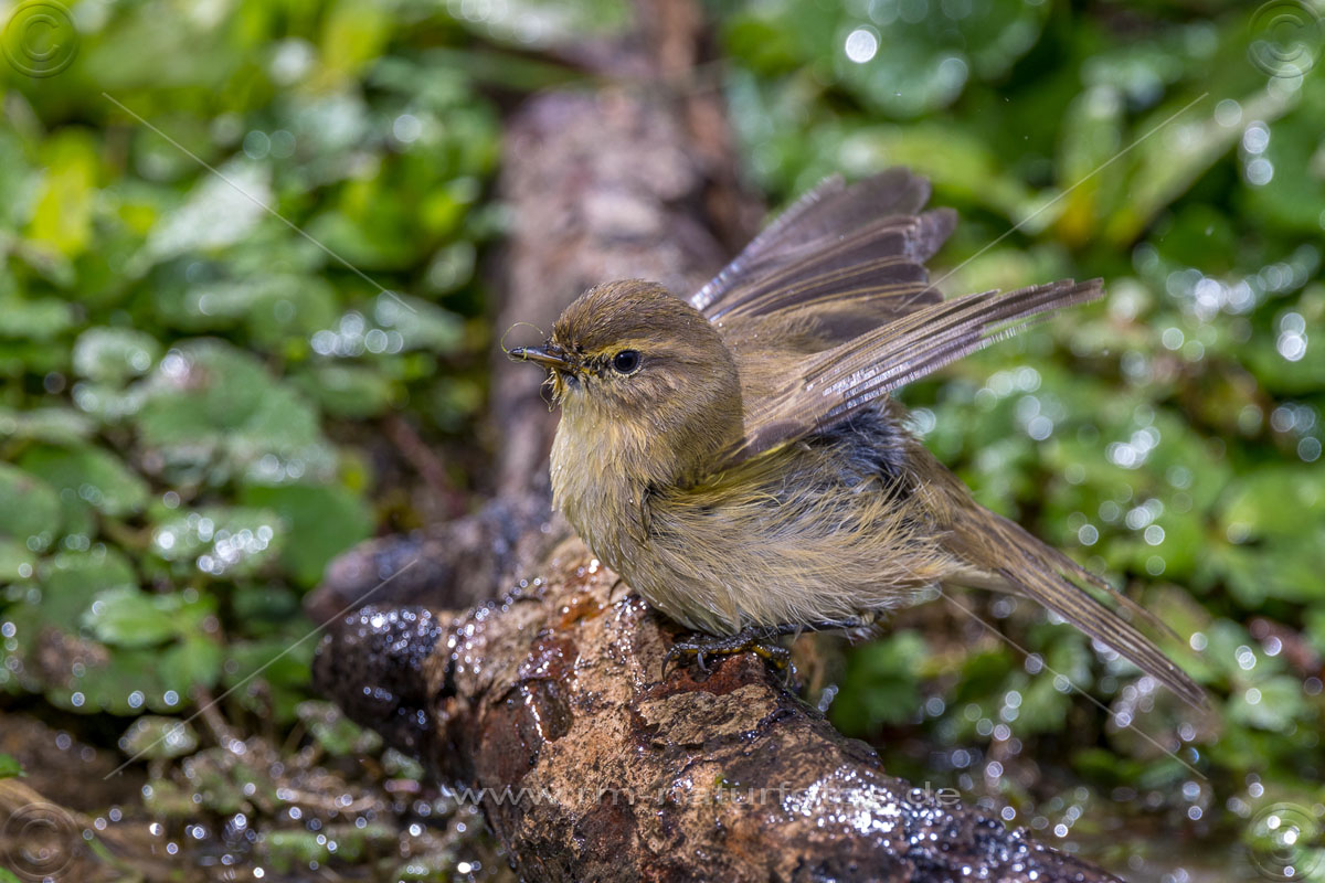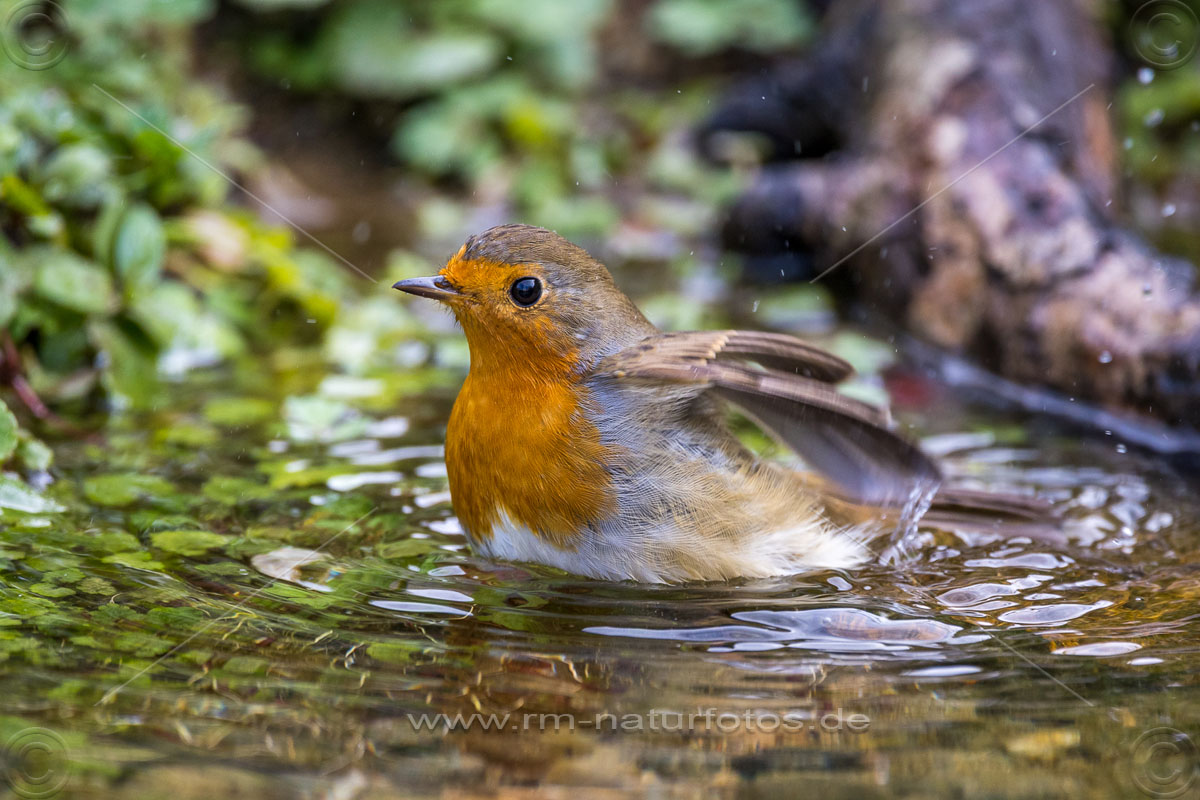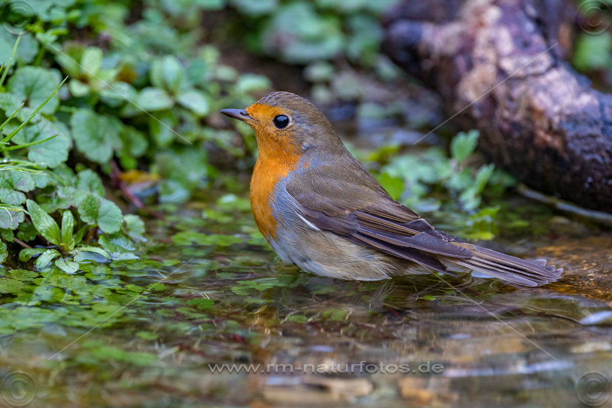 Hausrotschwanz (Phoenicurus ochruros) Weibchen badet