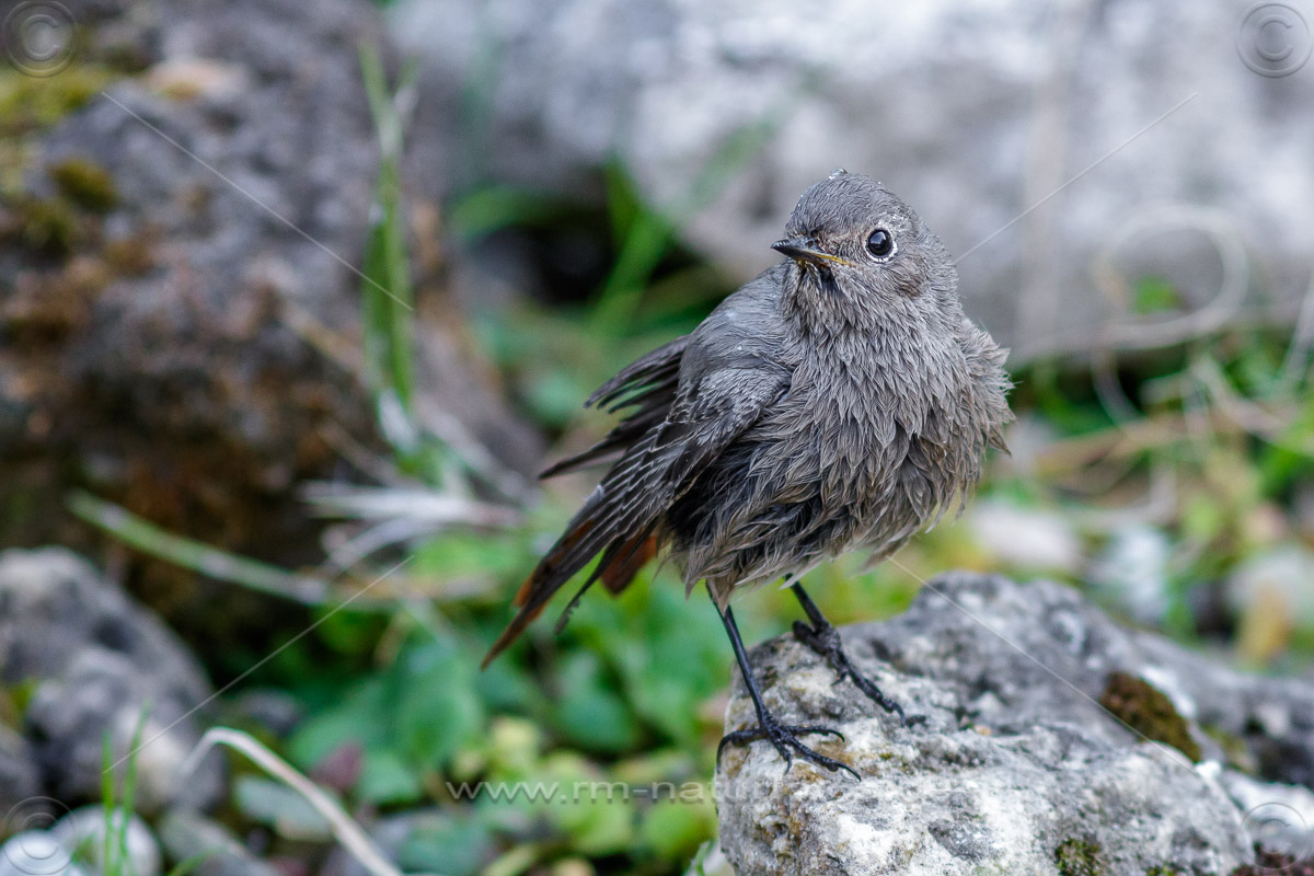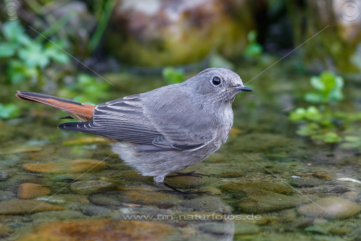 Hausrotschwanz (Phoenicurus ochruros) Weibchen badet