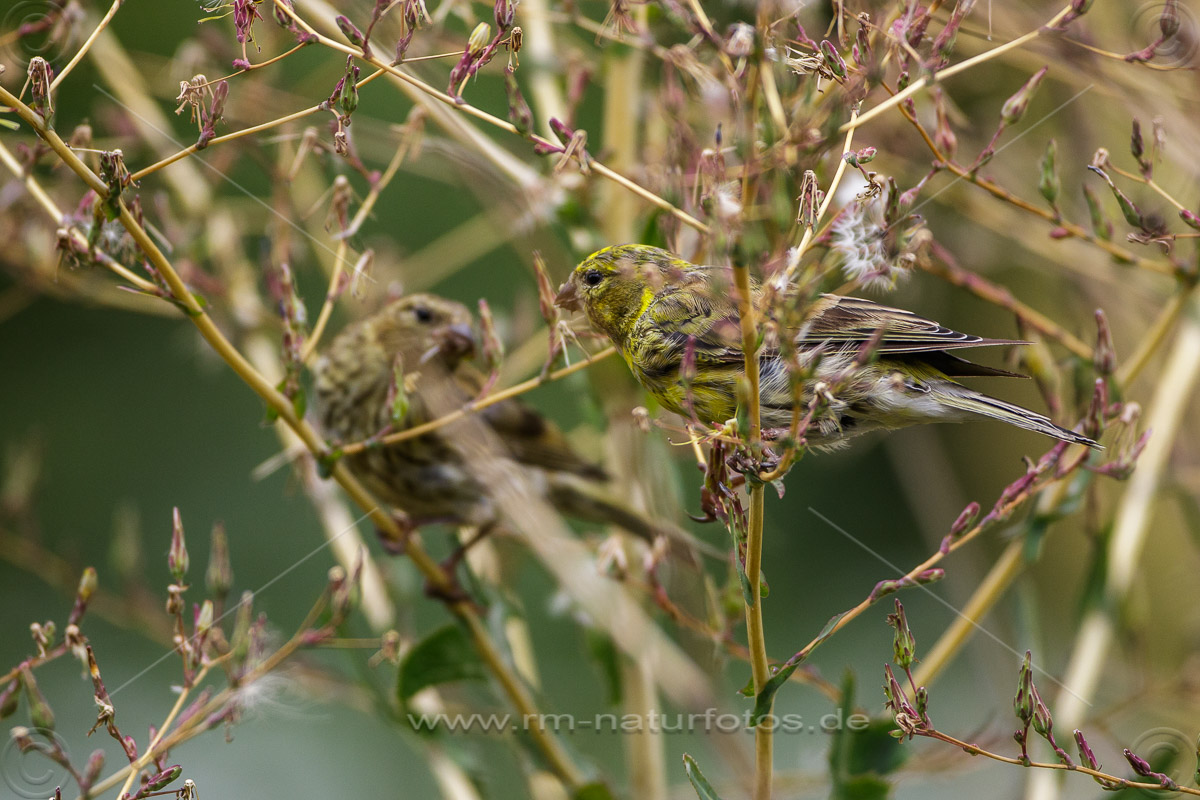 Girlitze (Serinus serinus) Jugendkleid und Grünfink